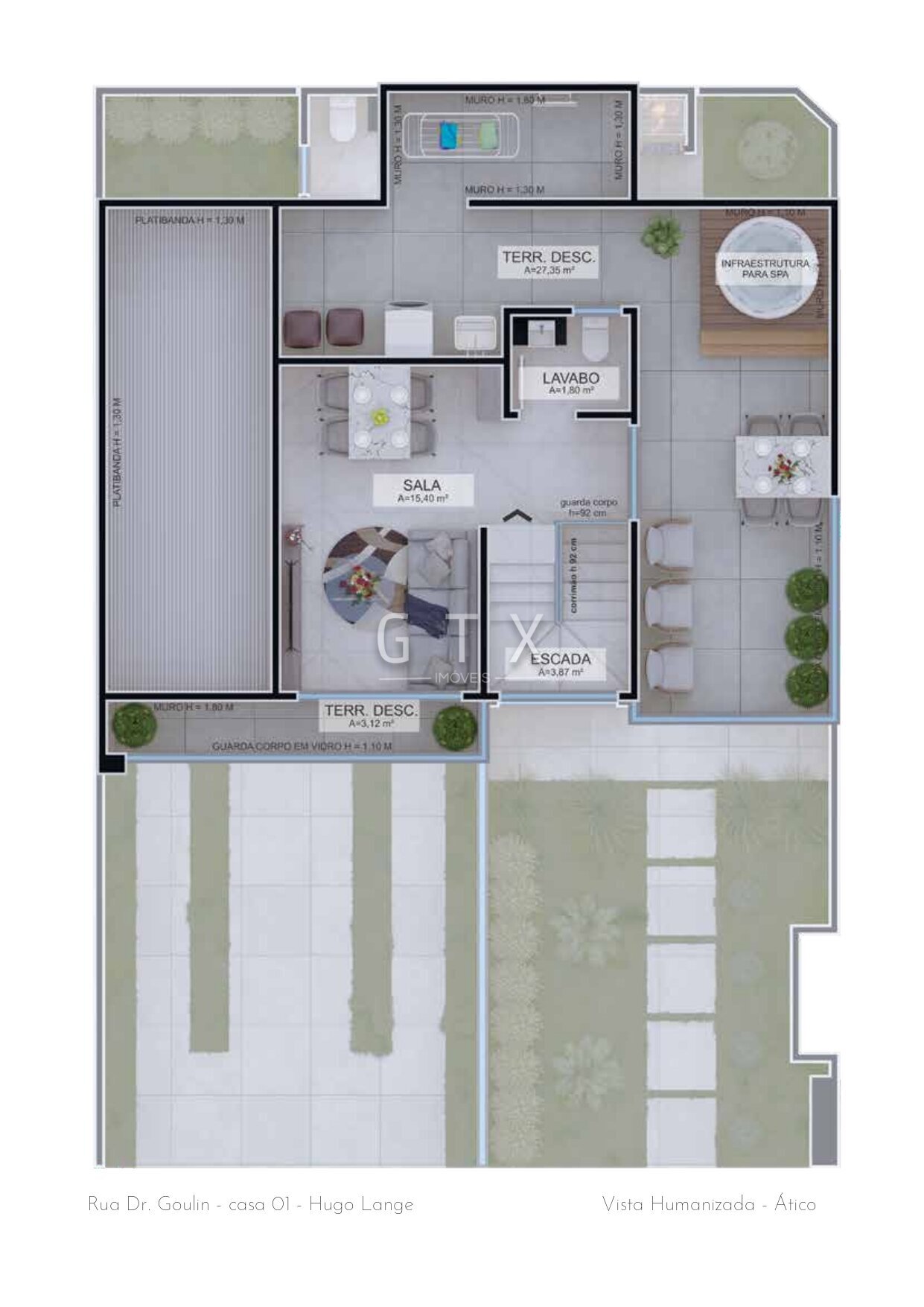 Sala, lavabo e amplo terraço com infra para jacuzzi!