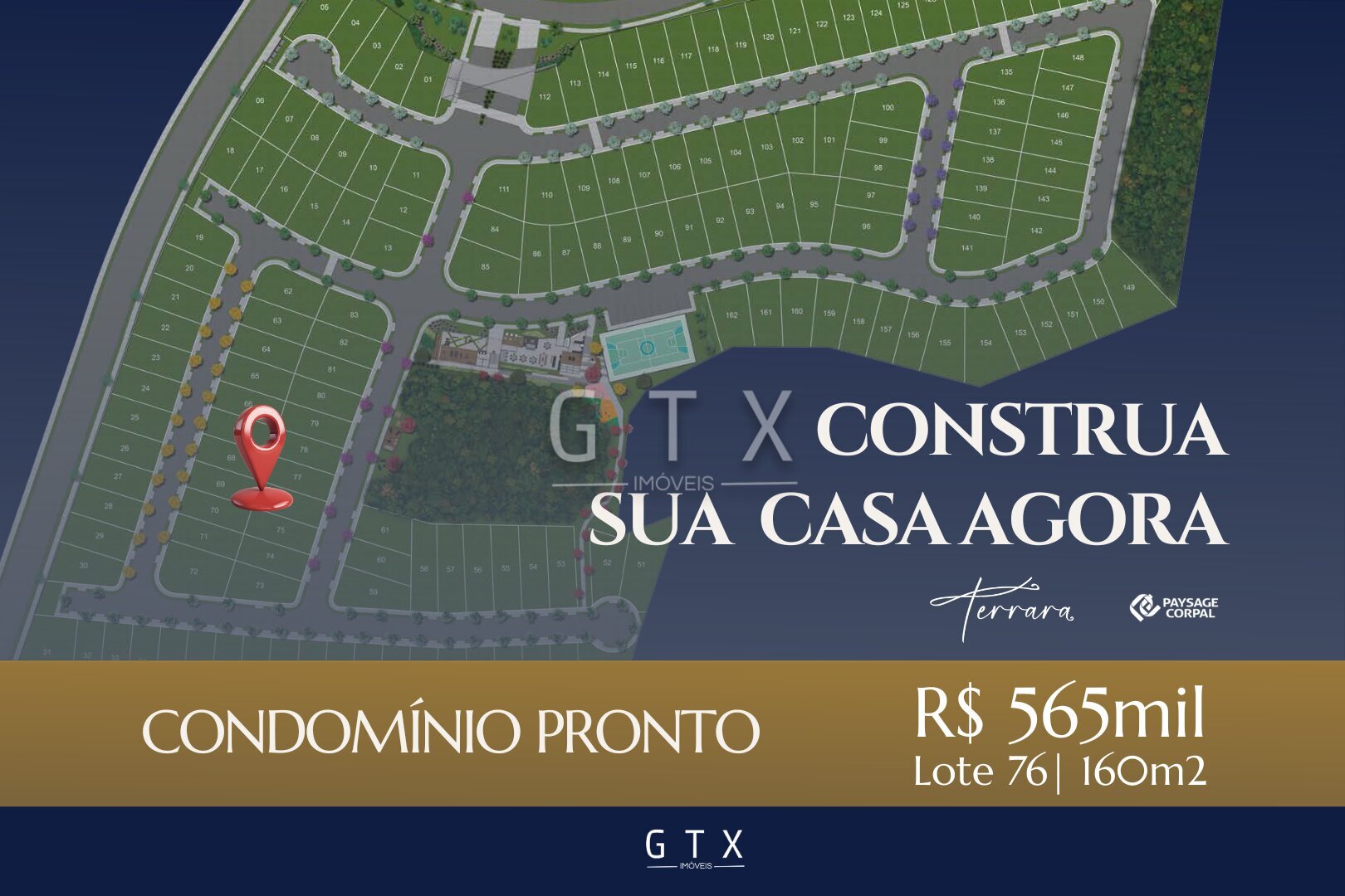 Terreno plano com 160,00m² de área de uso exclusivo, no condomínio Terrara.
